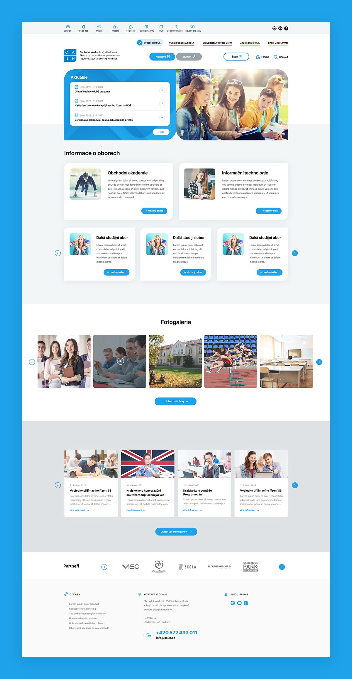 Obchodní akademie, Vyšší odborná škola a Jazyková škola s právem státní jazykové zkoušky Uherské Hradiště je instituce s dlouholetou tradicí, ze které vzešlo mnoho úspěšných absolventů. Jsme rádi, že jsme právě pro tuto školu mohli vytvořit nový, přehledný a funkční web.