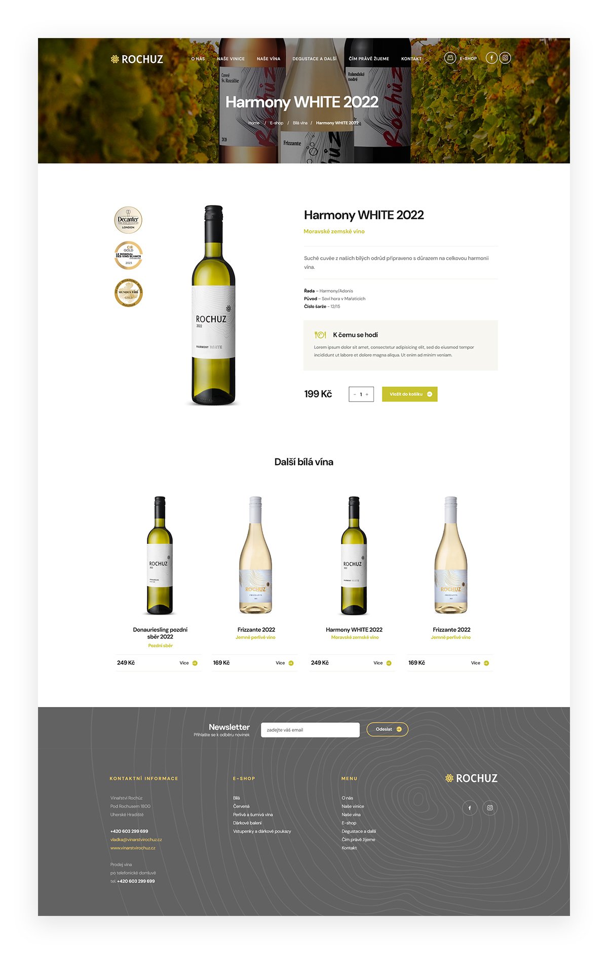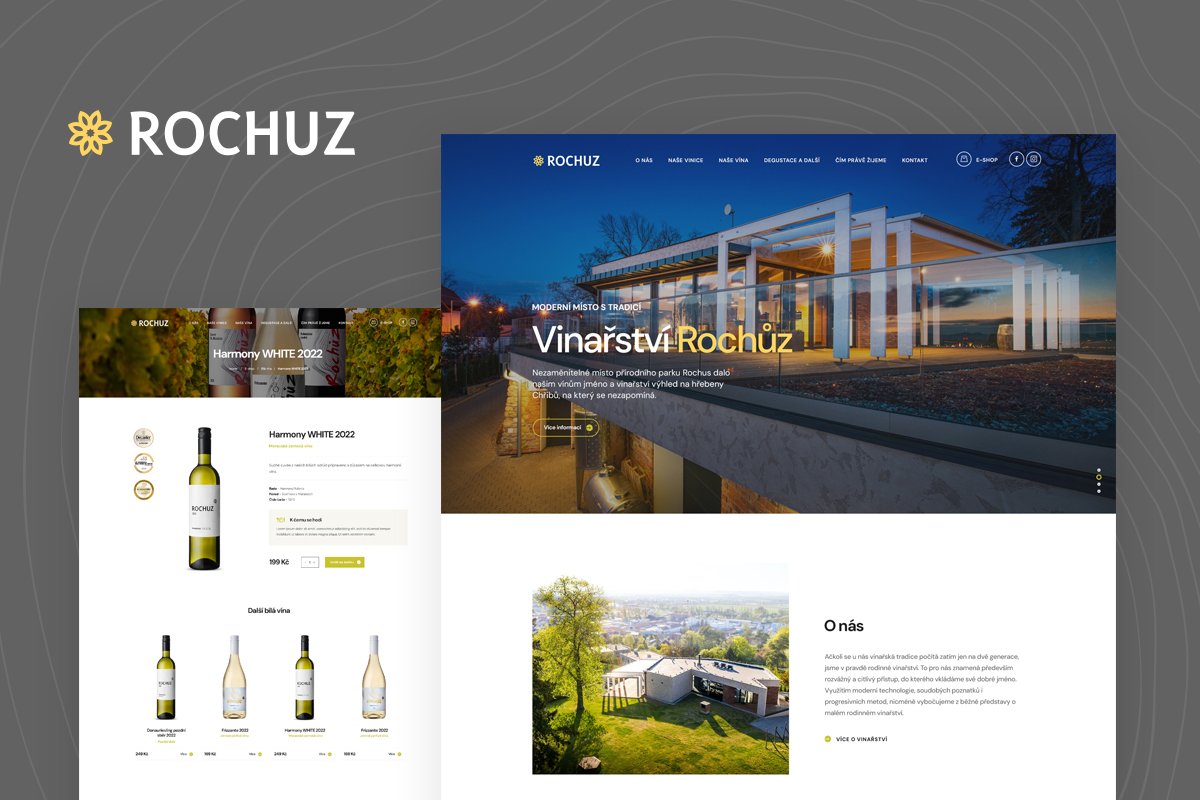 Vinařství Rochuz sídlí na úpatí stejnojmenného parku a skanzenu. Kromě úchvatného výhledu na královské město nabízí i posezení v moderním interiéru a velkou nabídku kvalitních vín. Aby měli zákazníci možnost vychutnat si lahodný mok i doma, pro Vinařství Rochuz jsme navrhli elegantní web i přehledný a funkční e-shop.
