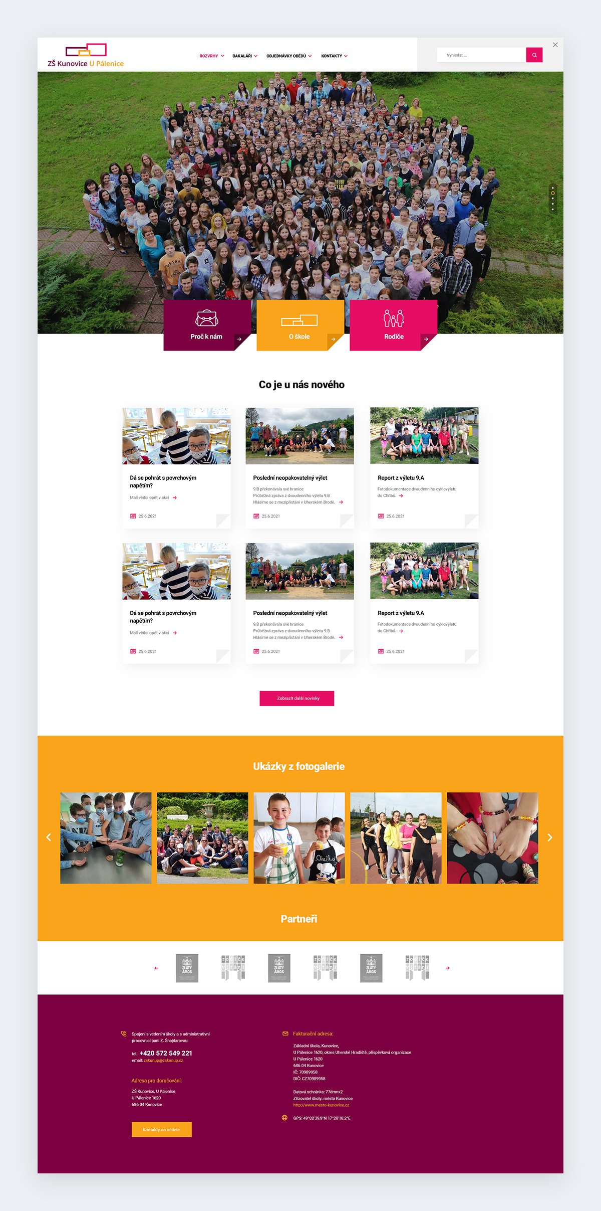 Základní škola Kunovice U Pálenice si pro své webové řešení zvolila to, které nabízíme u nás v Machin.cz. Rodiče, žáci i veřejnost na něm najdou vše, co o škole chtějí vědět, včetně objednávky obědů nebo odkazů na sociální sítě školy.